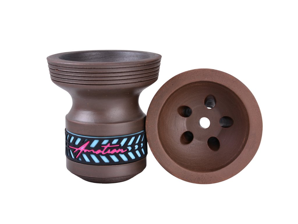 Typickým znakem je ikonický hnědý odstín Cosmo, vznikající tradičním procesem vypalování mléka. Každý kus je díky tomu originál s jedinečnou strukturou a barvou. Design doplňuje barevně sladěný silikonový prstenec, který přesně koresponduje s jednotlivými barevnými variantami vodních dýmek Amotion Valve a vytváří tak dokonale sladěný celek.